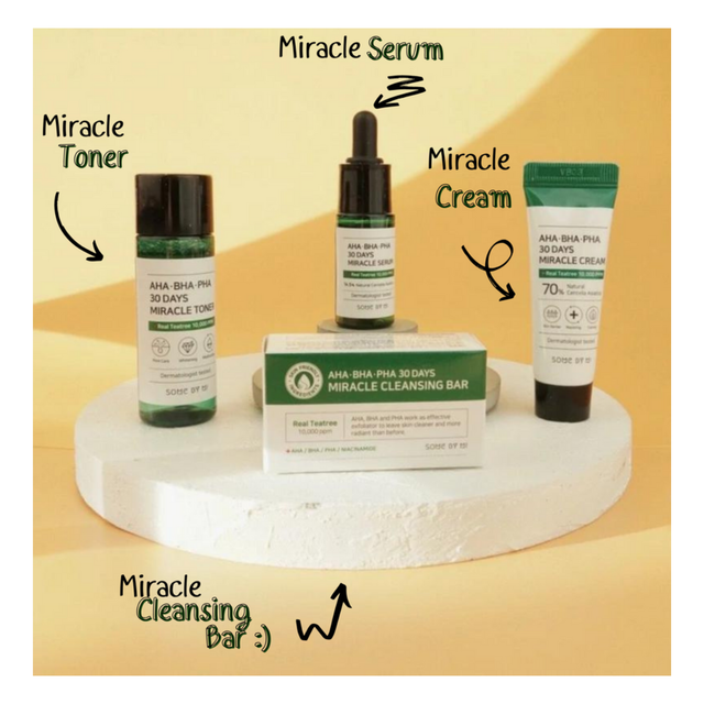 Testez les produits de la gamme miracle 30 jours aux AHA, BHA et PHA avec ce kit d’essentiels au format voyage ! Vous y retrouverez le nettoyant miracle pour nettoyer votre peau en profondeur, le tonique miracle pour une exfoliation tout en douceur, le sérum miracle pour apaiser les peaux irritées, ainsi que la crème miracle pour renforcer la barrière cutanée.Dites bye aux boutons, cicatrices et autres imperfections !